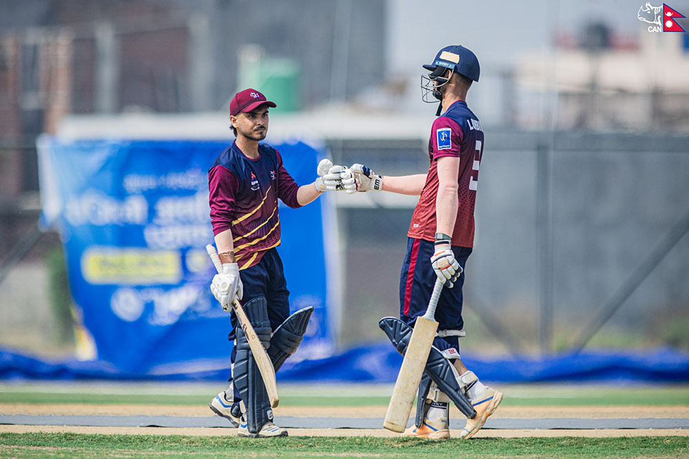 यसअघि टस हारेर पहिला ब्याटिंग गरेको लुम्बिनी ४९.५ ओभरमा अल आउट हुदै २१७ रन बनाएको थियो । लुम्बिनीका लागि प्रज्वल थापाले सबधिक ७२ रन बनाए भने म्रिनल गुरुङले ३८, कप्तान देव खनालले ३३ रन बनाएका थिए । त्यसैगरी गण्डकीका बलर अमृत गुरुङले ३ विकेट लिएका थिए भने चन्द्र पौडेल र विपिन खत्रीले २-२ विकेट लिएका थिए ।
