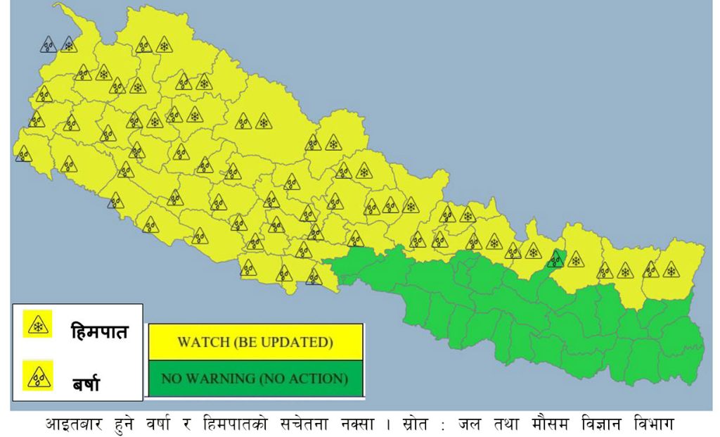 भोलि देशका धेरै ठाउँमा वर्षा र हिमपात हुने, सतर्कता अपनाउन आग्रह