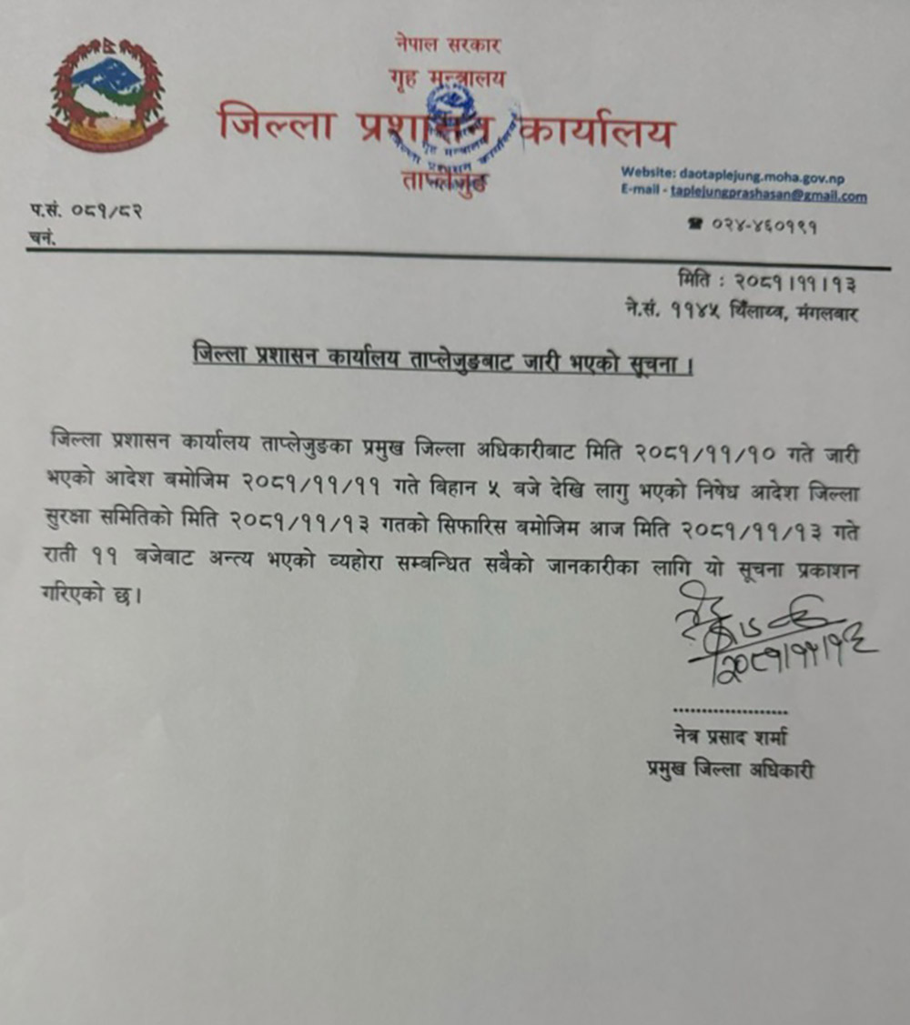 ताप्लेजुङको निषेधाज्ञा हटाइयो