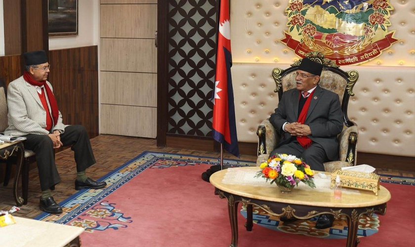 प्रधानमन्त्री प्रचण्ड र पूर्वप्रधानमन्त्री खनालबीच भेटवार्ता